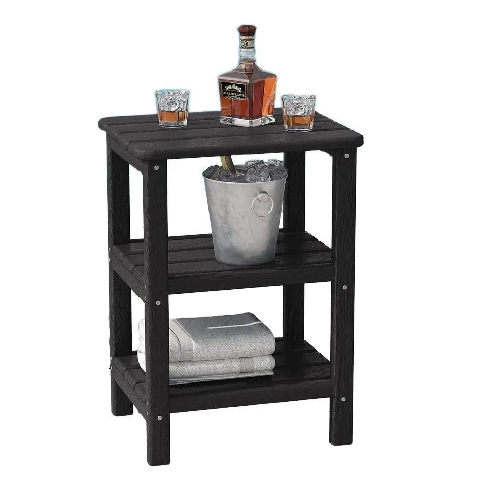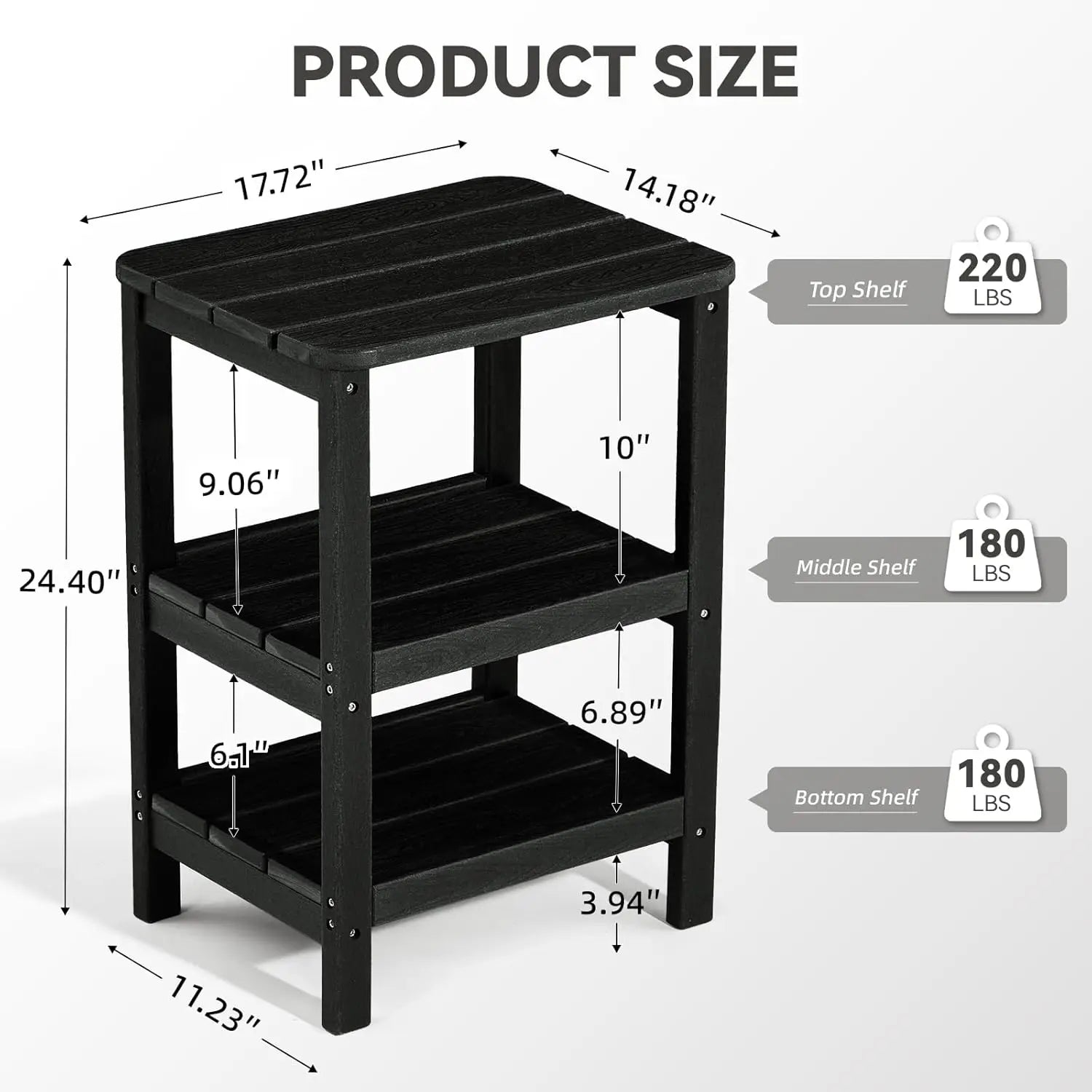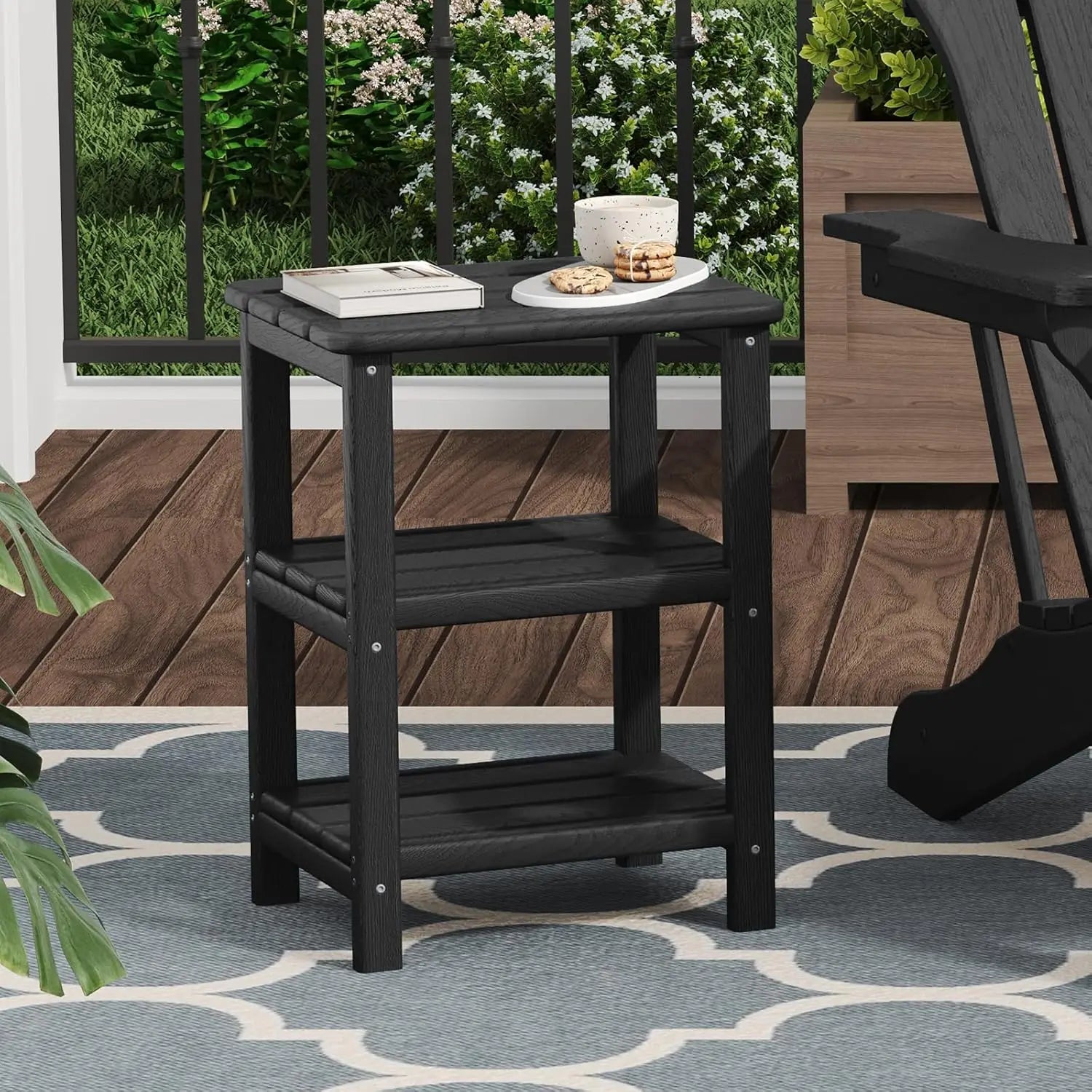 3-Tier Adirondack Side Table for Outdoor Patio Retro Black HDPE Rectangle Table for Backyard Garden or Balcony