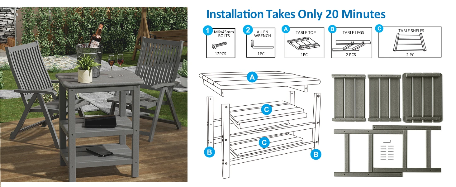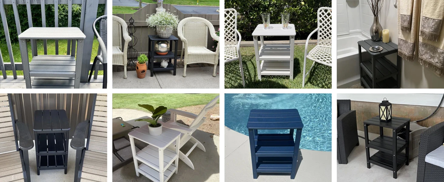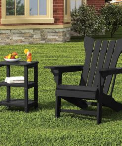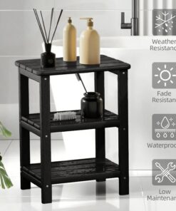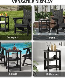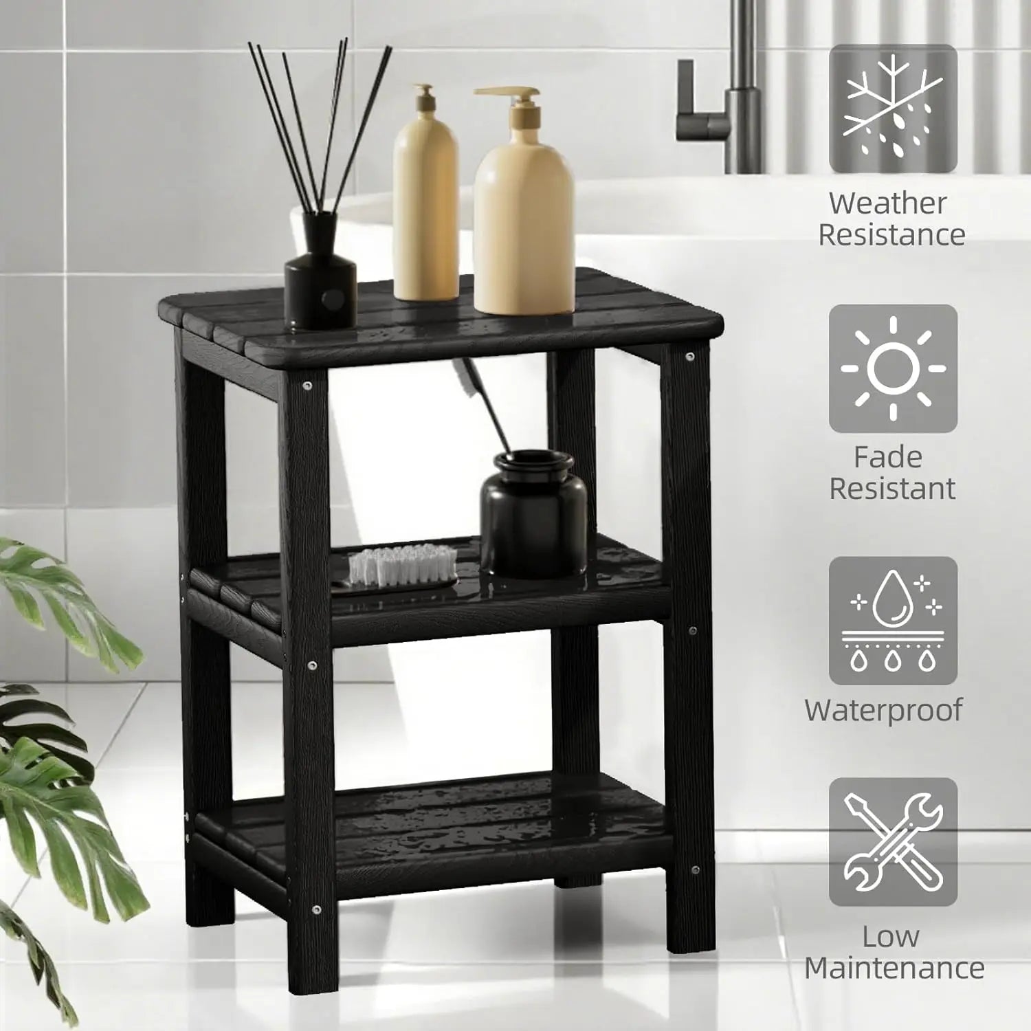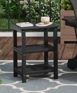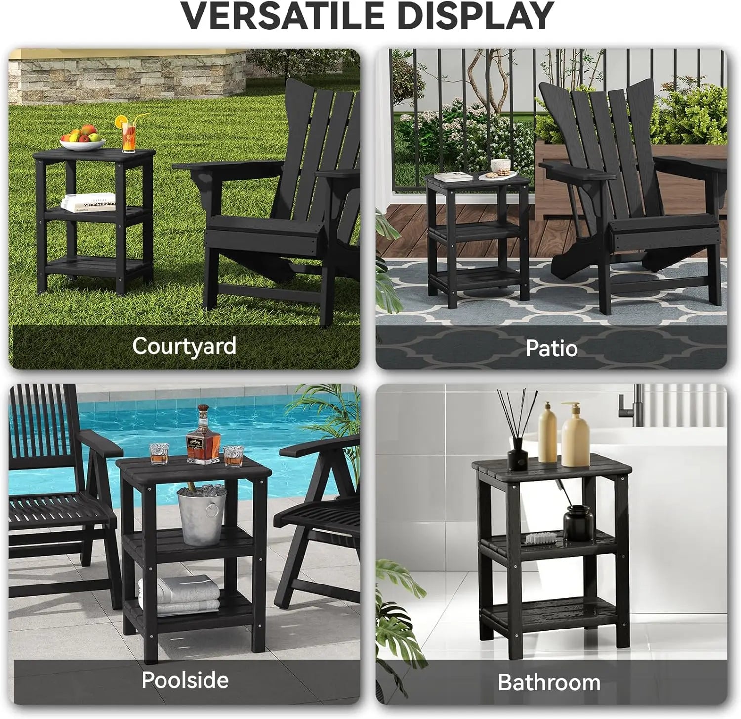 3-Tier Adirondack Side Table for Outdoor Patio Retro Black HDPE Rectangle Table for Backyard Garden or Balcony