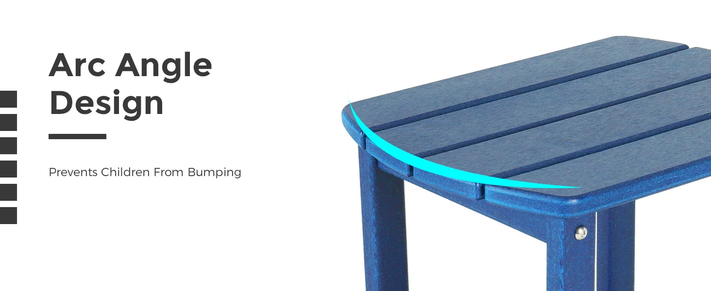- [EASY TO ASSEMBLE]The outdoor side tables for patio is easy to assemble,all spare parts needed are included in the parcel, only need to tighten screws to splice parts according to the manual included, this Adirondack side desk only needs a few steps to assemble, about 7-10mins to install with clear directions.