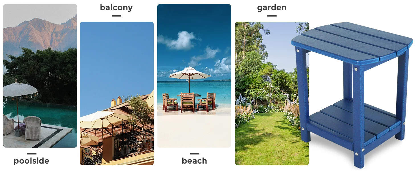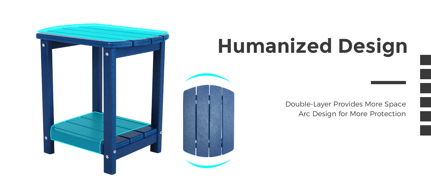 - [DURABLE MATERIAL]This side tables are made of recycled plastic HDPE material that is more weather resistant than other poly lumber table.HDPE is an eco-friendly solution to wood.Weatherproof, heavy-duty construction withstands a range of environmental stressors,Weatherproof, heavy-duty construction withstands a range of environmental stressors