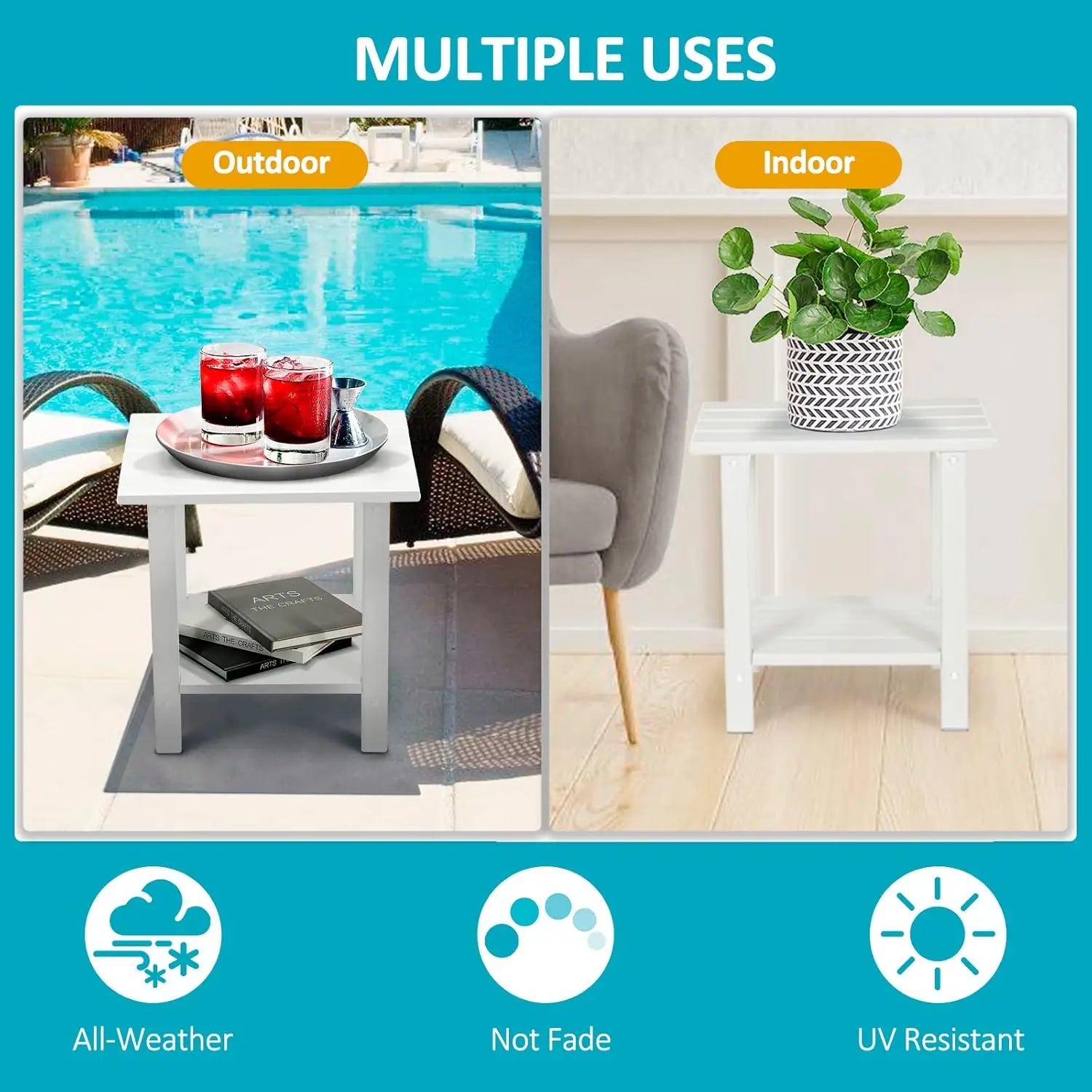 Adirondack Outdoor Side Table 2-Tier HDPE HDPE Weather Resistant Easy Assembly Small Patio End Table Poolside