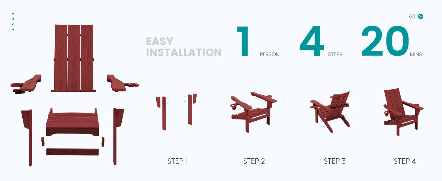 - Outdoor Adirondack Chair: Outdoor Adirondack chair is a modern take on the classic Adirondack chair design. It offers a wood-like texture that adds a touch of warmth and natural aesthetics to outdoor spaces.