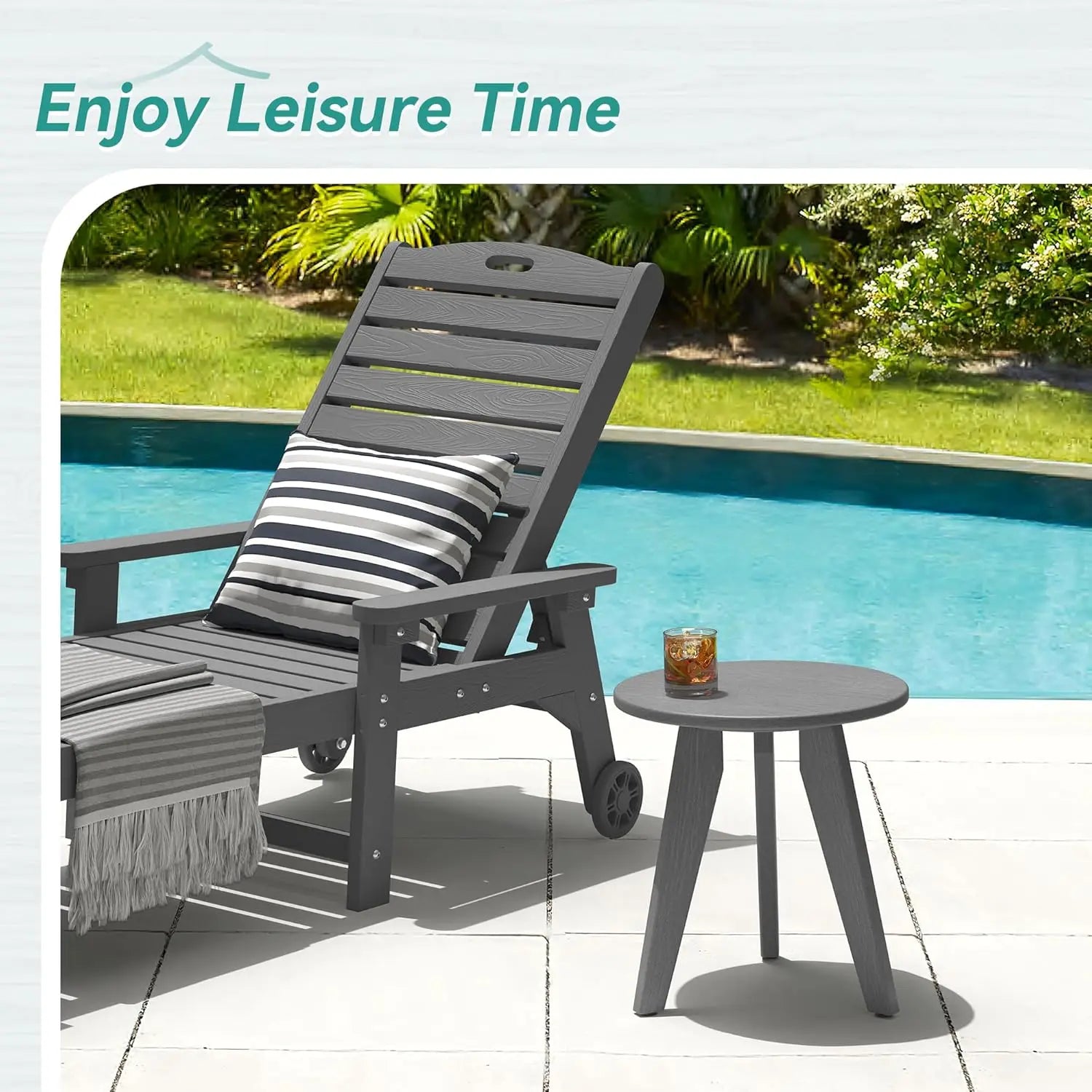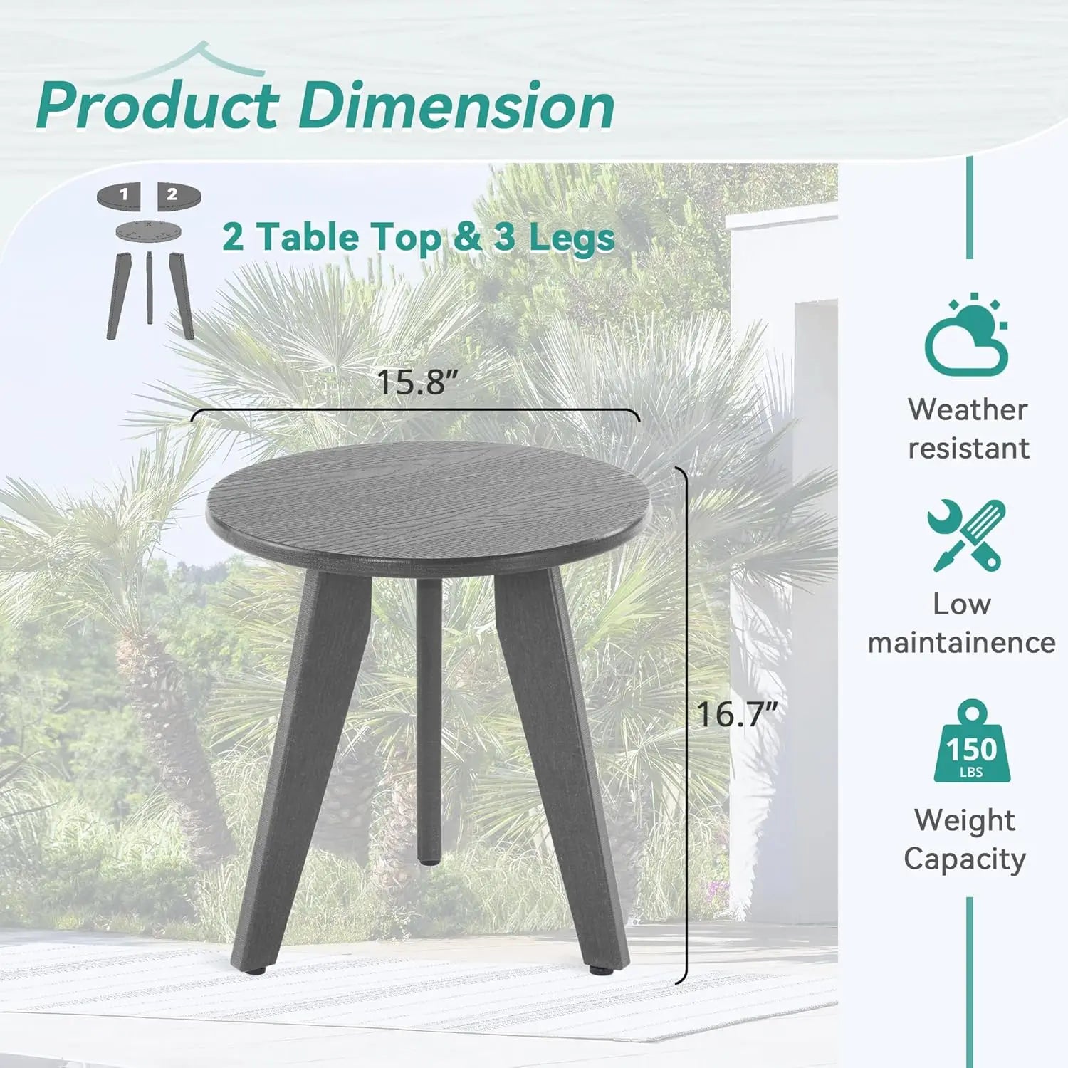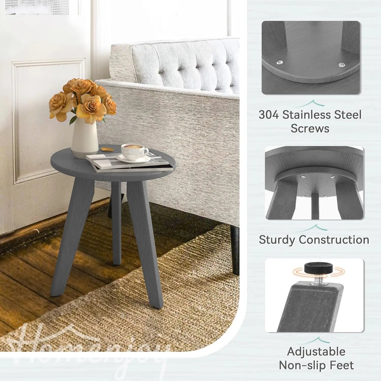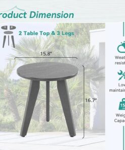 HDPE Gray Outdoor Side Table Weather-Resistant Patio Porch Deck End Table Coffee Tables for Living Room Bedroom Plant Stand