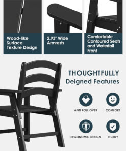 - Ergonomically design: This Outdoor dining chair has ergonomically designed for the back angle perfectly fits your body curve the comfortable seating, which can be used all year round and provides a maintenance-free outdoor seating experience.