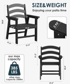 - Product Measurement: This Outdoor dining chair overall dimension is 21.2 x 31.9 x 35.8inches,Weight Capacity: 385lbs