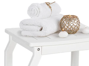 - [Ergonomic Shower Bench]The seat of this shower bench is ergonomically designed, which is supposed to support the muscles of your thighs and hips. Besides, it can also be a good helper for your legs while shaving. The bear capacity is 330 lbs.