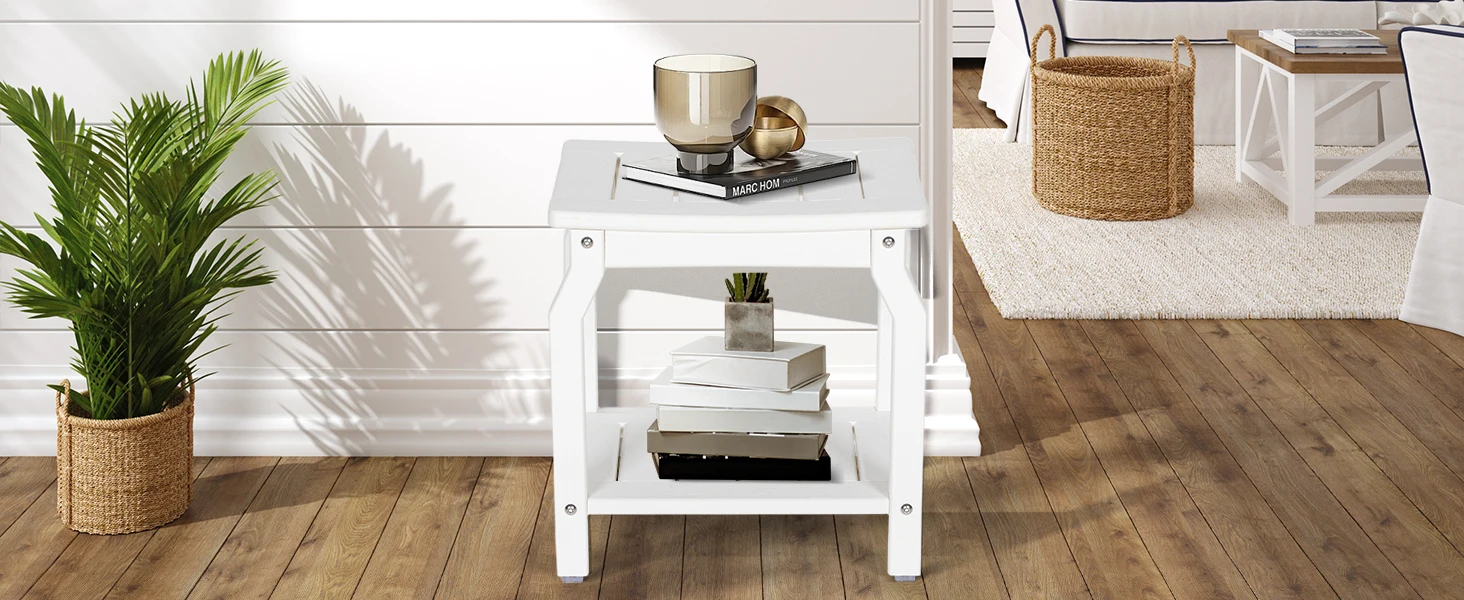 - [HDPE Material]Made of High-density polyethylene (HDPE) and stainless steel hardware, it will not crack, scratch, rust, or fade over time. The surface is designed with faux wood grain, making the table sturdy and durable while maintaining a vintage and elegant aesthetic.