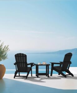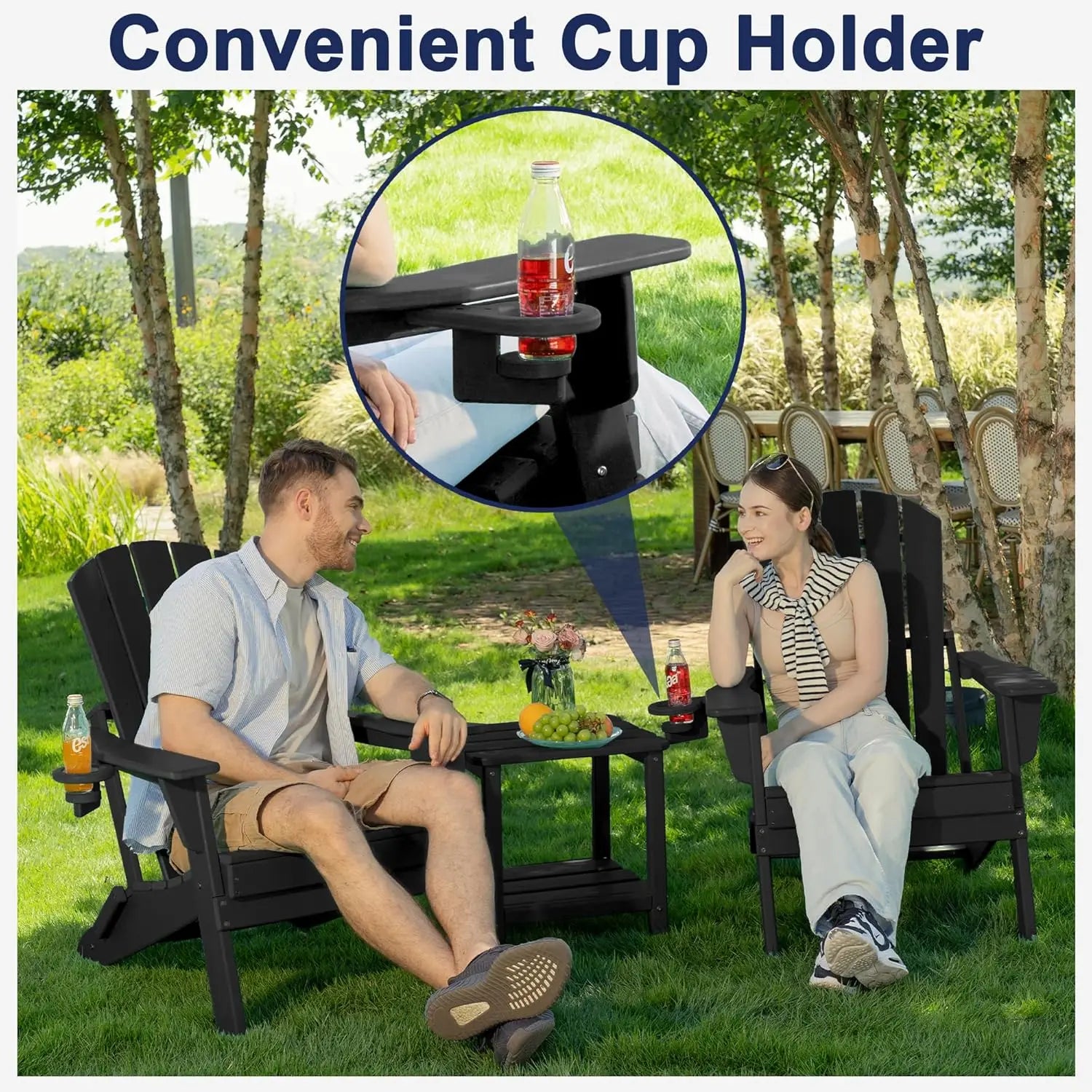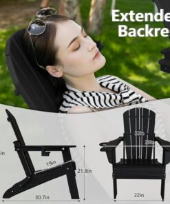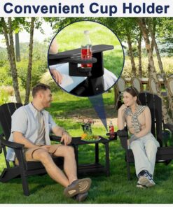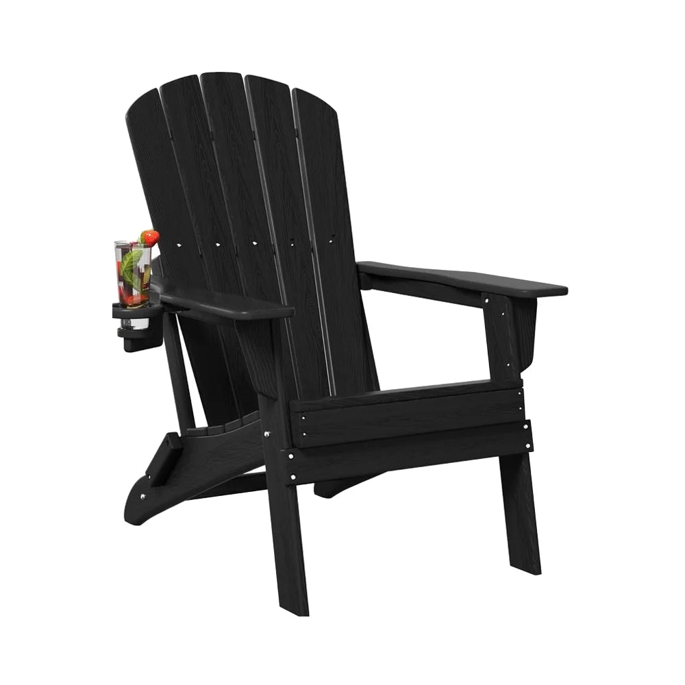 Modern Black Adirondack Folding Chair Cup Holder All-Weather HDPE Comfortable Set for Poolside Backyard Lawn