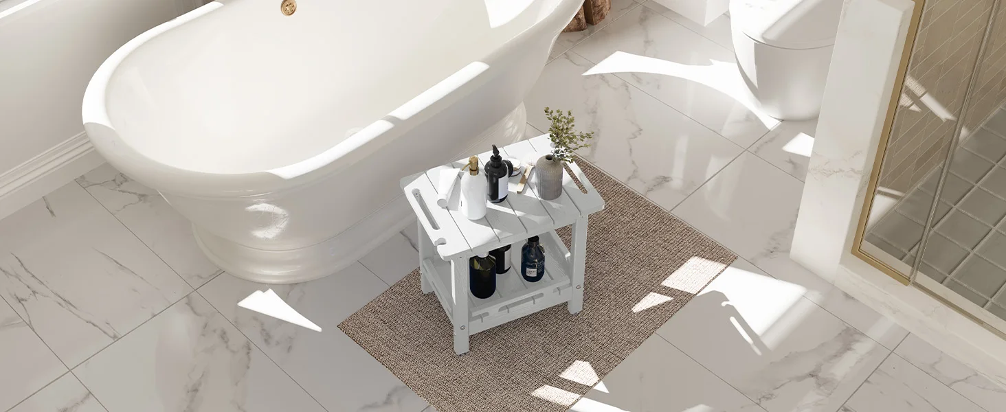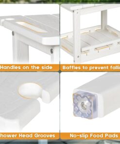 - Indoor & Outdoor Use – This handy bathroom seat is practical and can be used to place items or as a sitting stool. Ideal for a shower stall, major bath, stand-up shower, and walk-in shower. Also suitable for the living room, bedroom, and entrance as an end table. HDPE material allows it to be used outdoors as a side table for outdoor furniture.