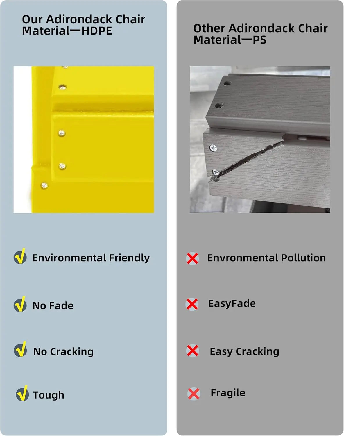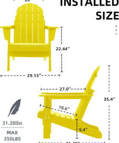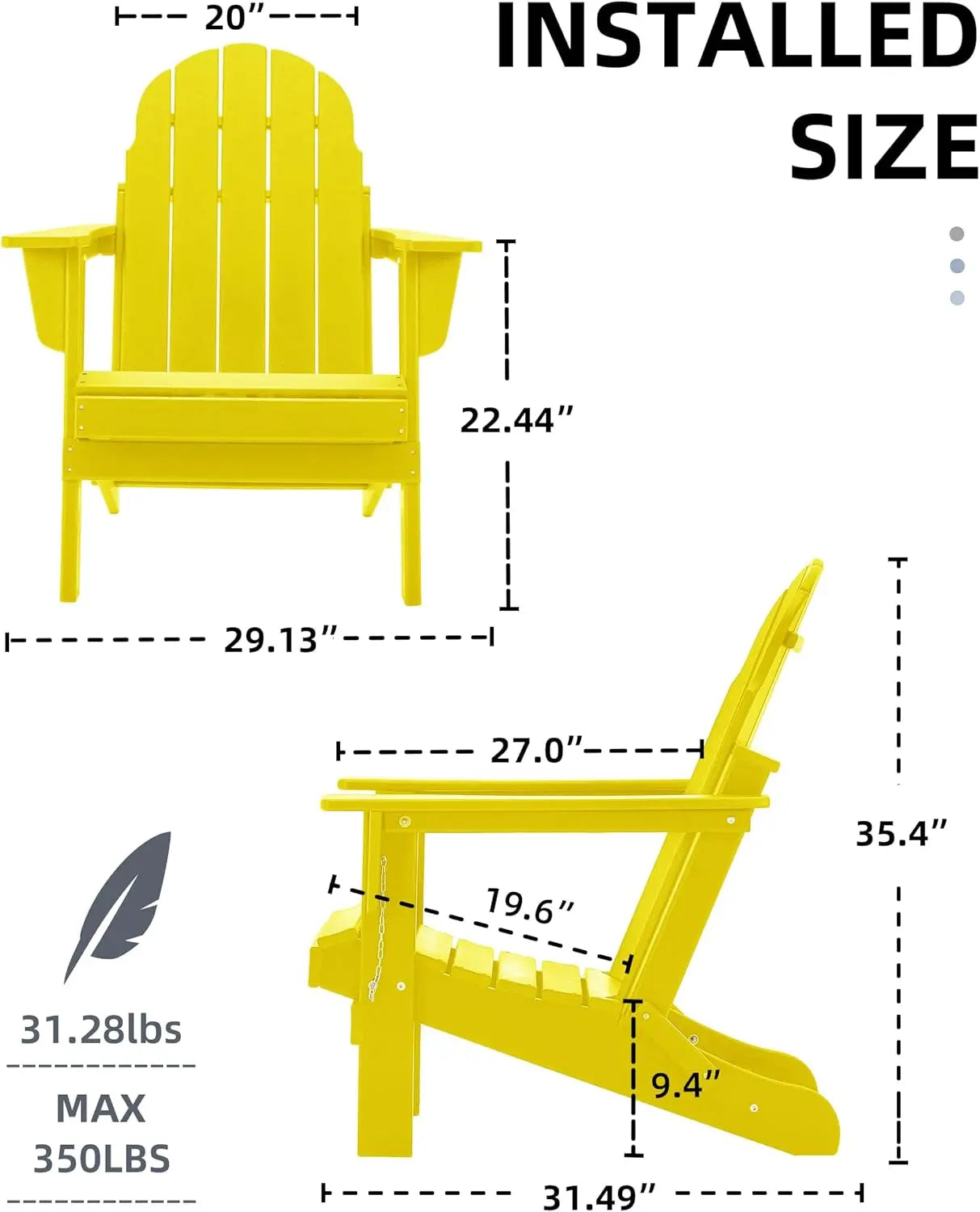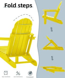 Modern Yellow HDPE All-Weather Adirondack Chairs Folding Fire Pit Chairs for Outdoor Use