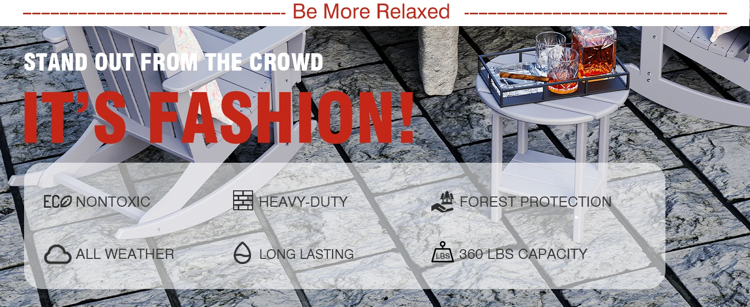 - [EASY TO ASSEMBLE]:The screws of the table are made of stainless steel 304, one of the best materials on the market. So you don’t have to worry about the rust of accessories and other issues. The adirondack table is equipped with a complete and clear manual, and the structure is clear and simple.