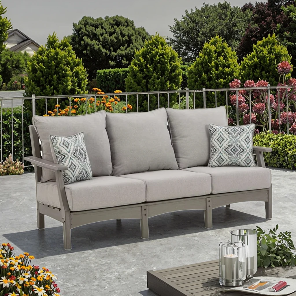 Outdoor HDPE Grey Sofa With Cushion Patio Open-air Balcony Waterproof UV Resistant Hotel B&B Garden Outdoor Furniture