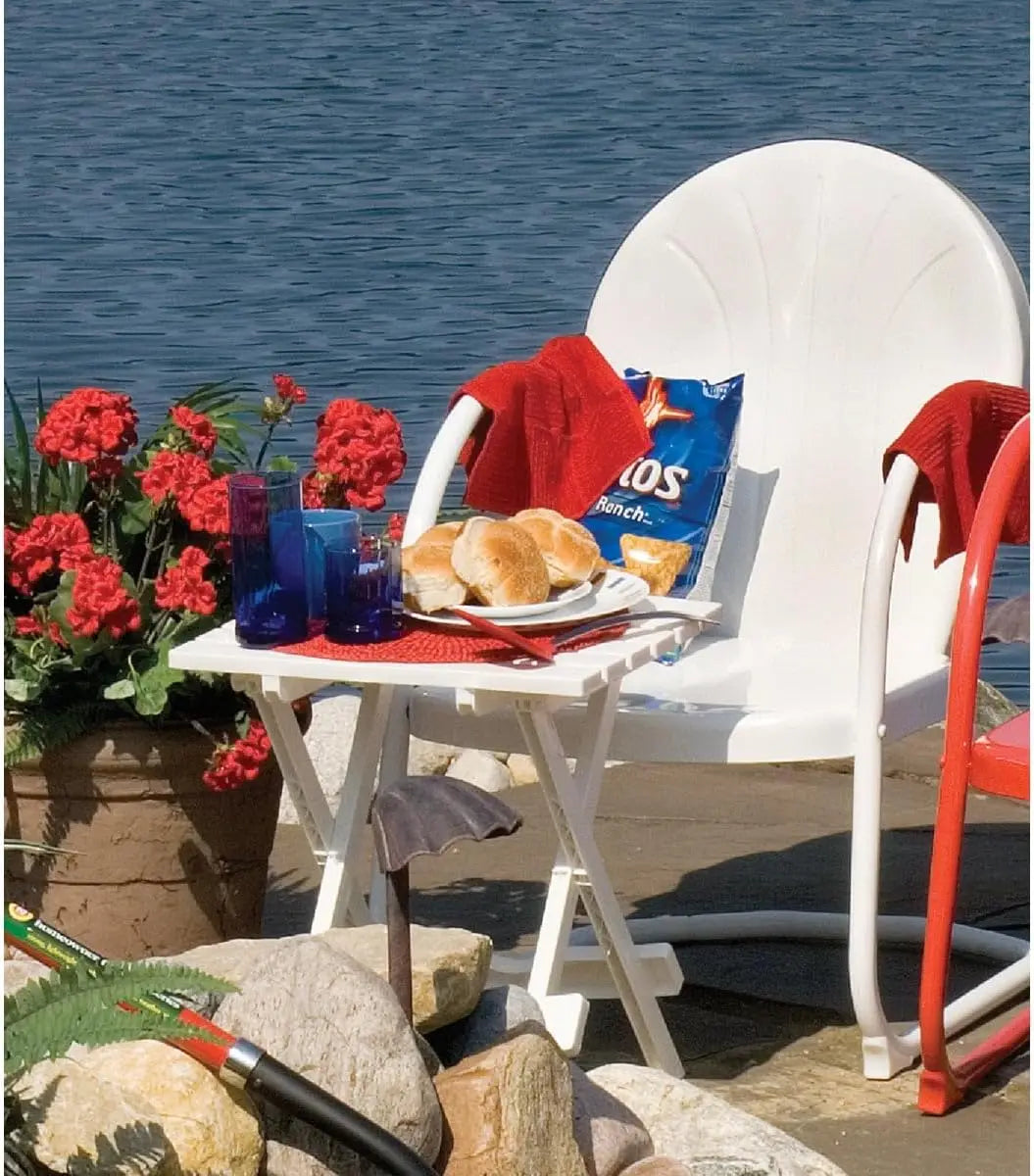 Patio Side Table White HDPE Modern Design One Size Folding Outdoor Furniture
