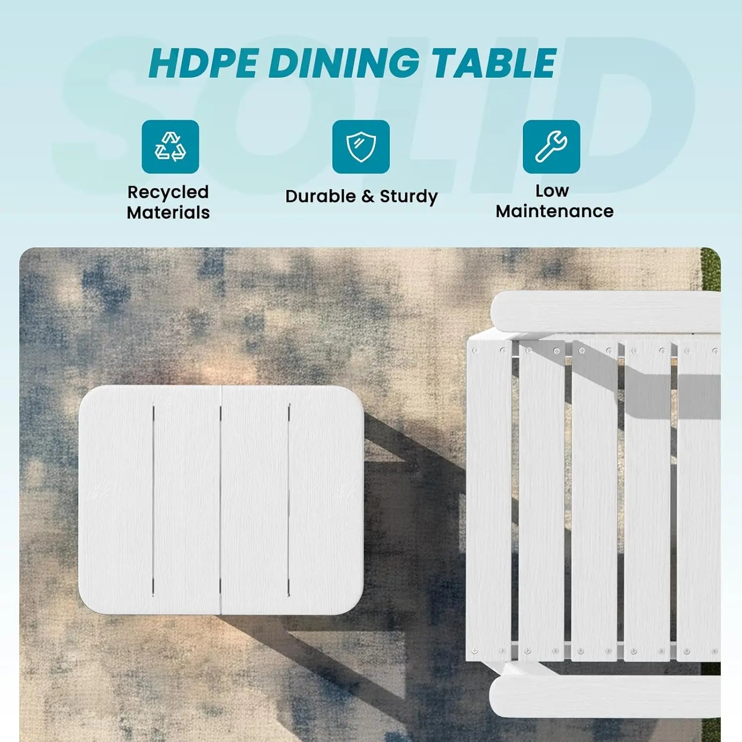 White HDPE Adirondack End Table Double Patio Side Table for Outdoor Dining Hospital Warehouse HDPE Furniture